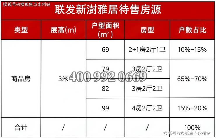 主推69㎡2+1房1卫、79-82㎡3房2卫、99㎡4房2卫户型,全系精装交付。