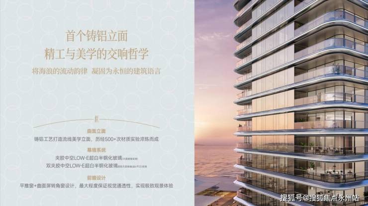 建筑设计:由英国法雷尔建筑设计事务所操刀,采用流线型超高层外观,外立面创新使用铸铝材质搭配曲面玻璃幕墙,窗墙比达1:7,融入太阳能光伏板、雨水收集系统等环保技术,设计费用高达6800万元。(深圳南山中信信悦湾售楼处电话:400-992-0669)