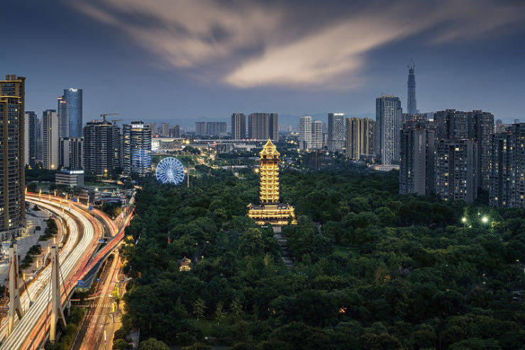 以蜀王府规制为蓝本,融合中国古代四大名画意境,打造四进式东方园林