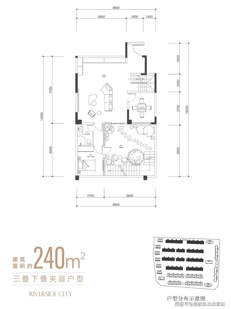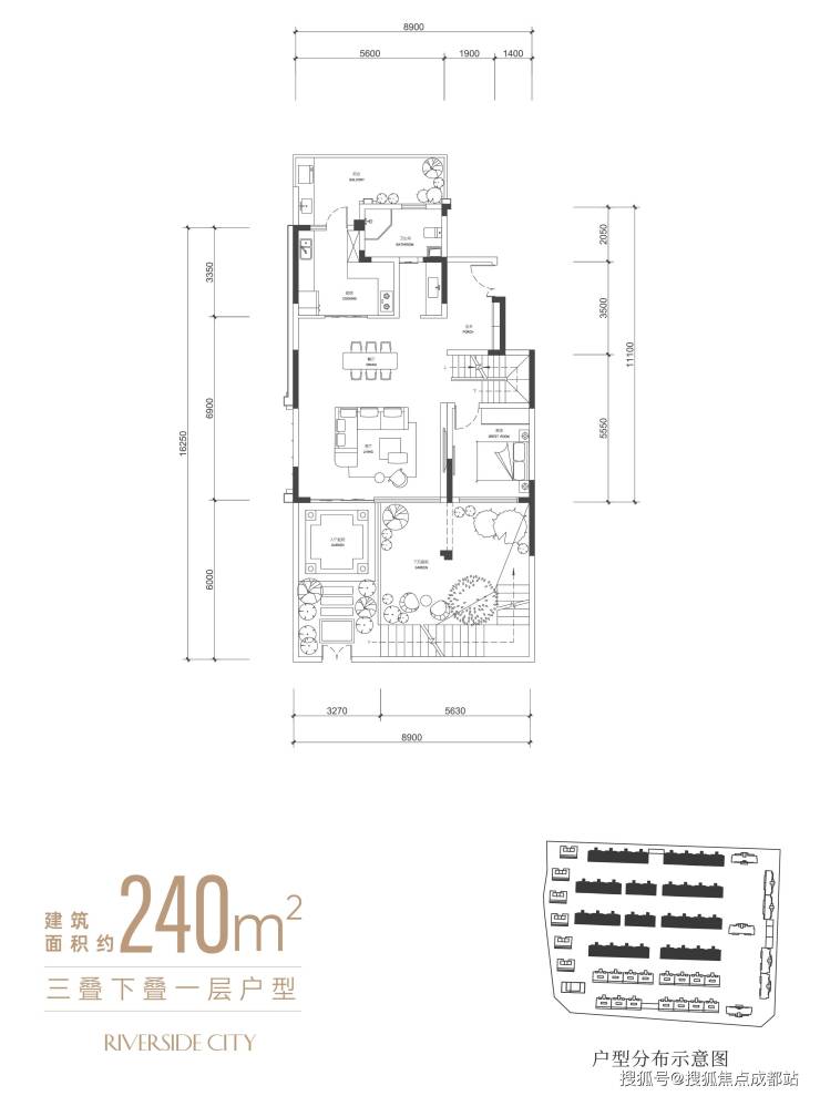 布局亮点:叠拼、双拼产品设计,奢阔层高(3.5米),私家庭院,一线临江,推窗即见千米江景。
