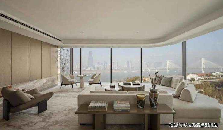从立面到空间,在长江天际为实现与长江的无界融合,「户户观江、双面瞰江」成为营造的标准,「转角无柱式玻璃幕」让约270°连贯江景,成为生活的日常。晨起时江雾拂面,日暮时霞光入室,在这里,建筑空间不再是长江对望的旁观者,而是与江水共生的参与者。长江之美不再止于静态的、表面的还原,而在于向世界展映长江的艺术封藏。