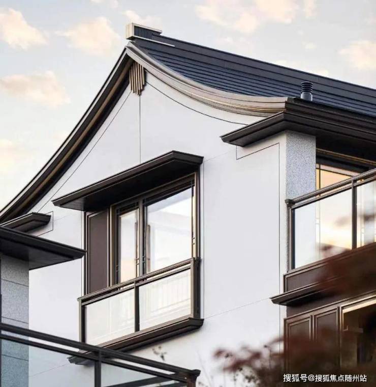 悬山顶、歇山顶等东方屋檐,举折、鸱吻、悬鱼等屋脊装饰,并结合铝板+极简线条等现代元素,营造独具韵味的当代山水建筑