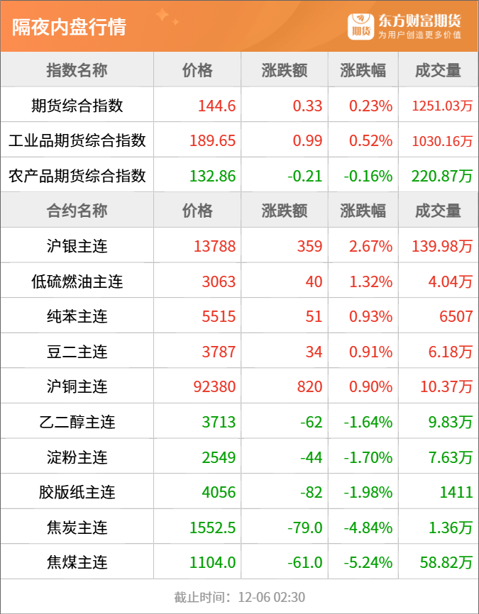 东方财富期货早餐 12月8日 周一