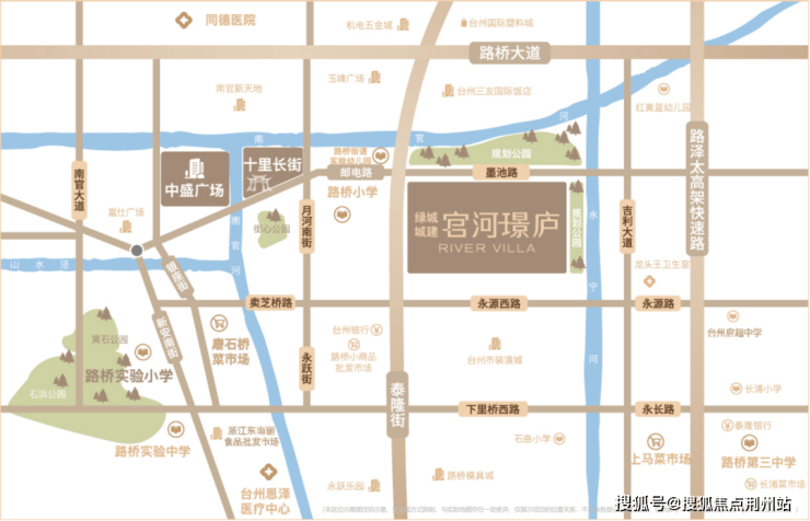 踞址路桥城芯,南官河、永宁江双河汇流,
