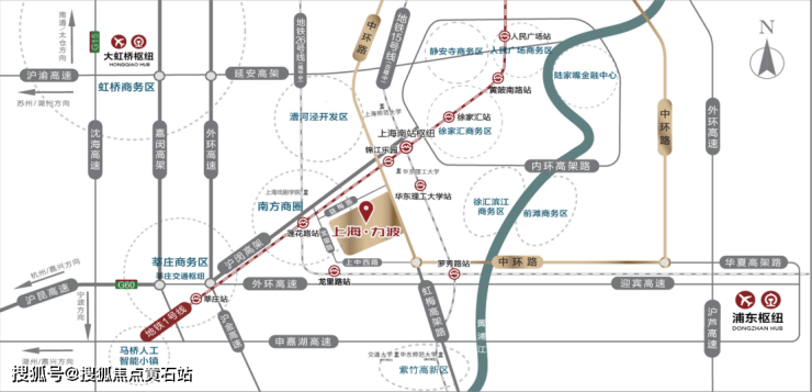 3座枢纽中心:南站枢纽客运铁路、上海长途客运南站、莘庄交通枢纽;