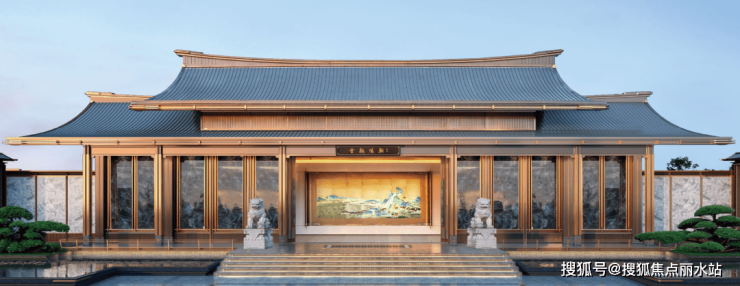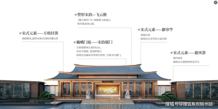 而且,如今南昌保留下来的建筑古迹也很多都是宋代的,你看重建后的滕王阁也是借鉴了宋代的建筑元素,然后建发又把滕王阁的宋风意境融入到了观云引以为傲的65米宽,12米高的超级大门上,双重飞檐有着极高的艺术审美和文化内含,真的非常漂亮。