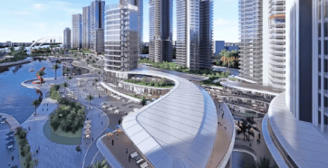 在社区规划上,项目采用沿港湾半围合的 C 字布局,楼栋一字排开实现 “栋栋皆楼王、江景平权” 的效果,确保每套房源都能拥有无遮挡的景观视野。同时创新采用 7+7 盖板设计,构建起盖上私密园林、盖下滨江商业带、地下交通与配套的三层礼序空间,再叠加 270° 环幕滨江会所及公共港湾公园,为业主打造出层次丰富的湾畔生活场景。
