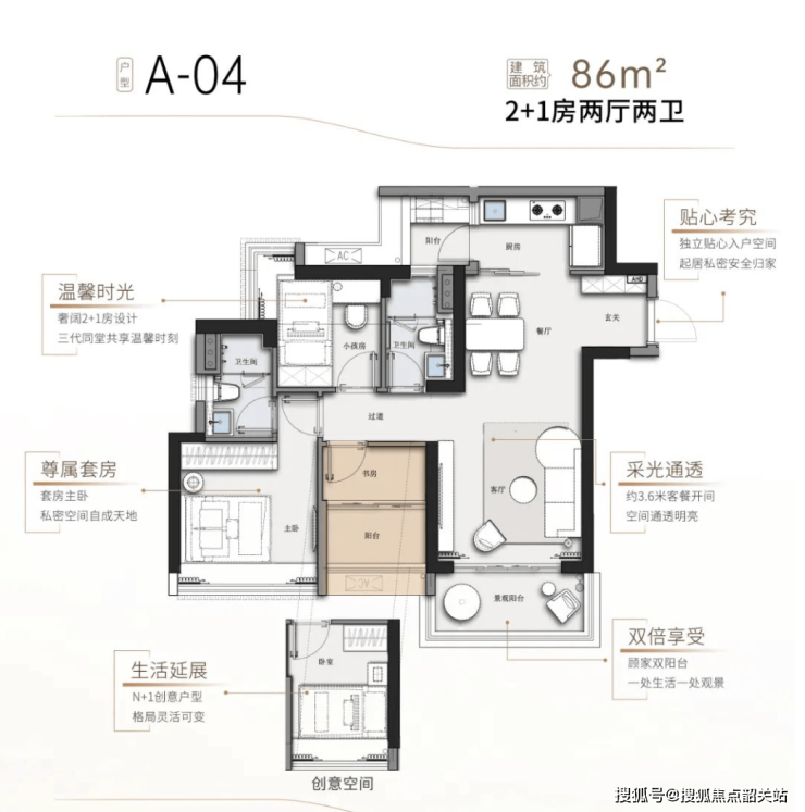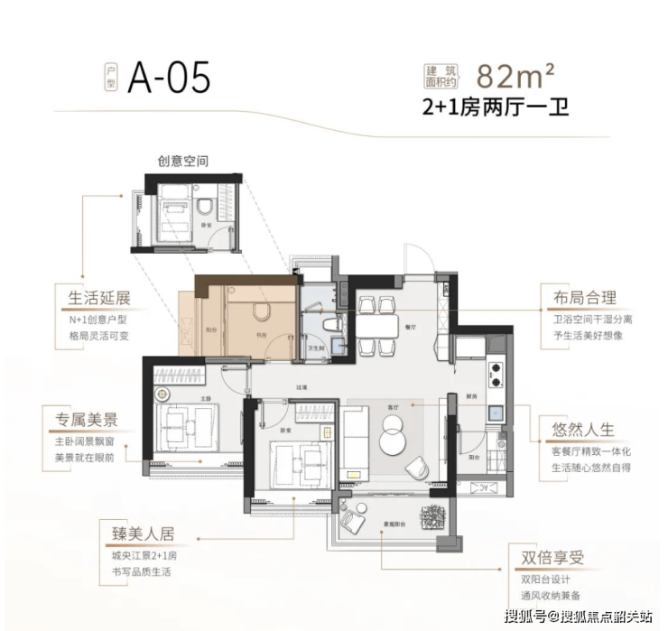 A:建面82-128㎡三至四房,适合刚改或改善型家庭。