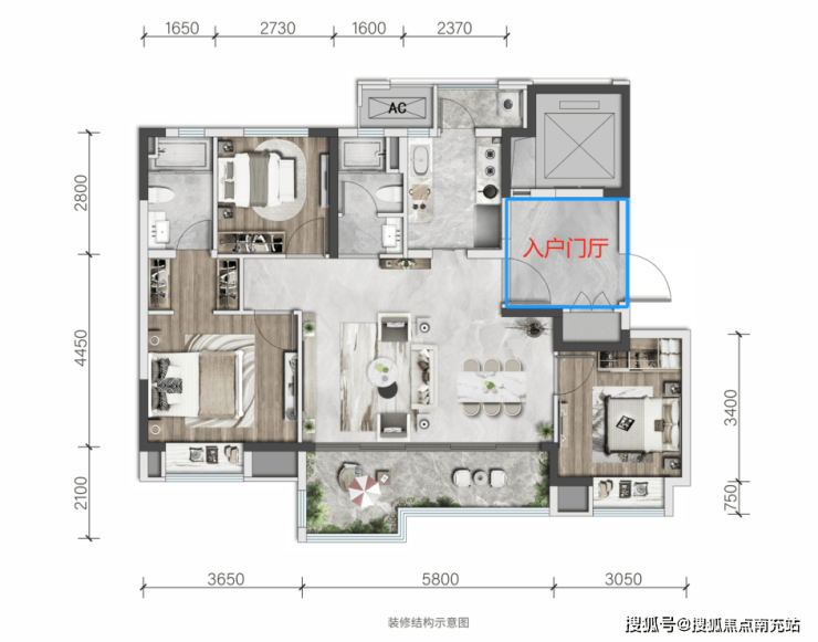 天恒·锦上樾即使是建面约115㎡的户型,也是每一户都带约6㎡的独立入户门厅,可增加储物空间,也创造了更富仪式感的归家体验。