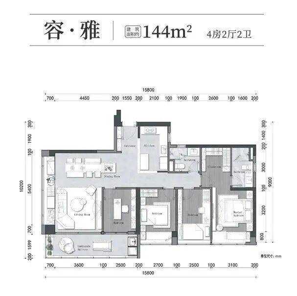 主力户型聚焦105–144㎡三至四房,空间布局注重家庭动线