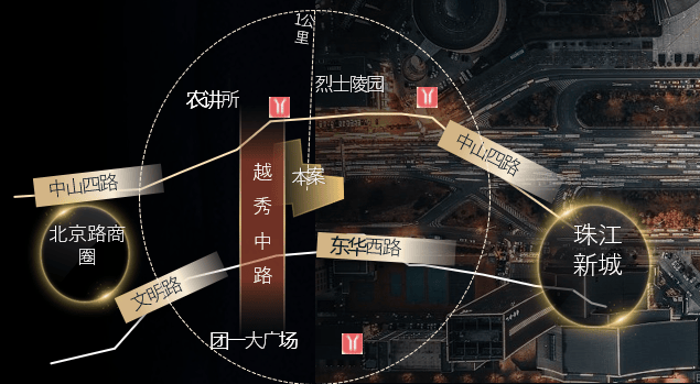 广州万科瑧樾府坐落在越秀区中山三路与德政中路交汇处,距离地铁1号线农讲所站直线约400米,6号线团一大广场站约700米。这意味着无论是通勤珠江新城、天河还是海珠,换乘都相当便捷。项目周边还有东风路、中山路、环市路三条城市主干道环绕,自驾出行也无需绕行拥堵小巷。更重要的是,这里不是“地图上看着近、实际绕半天”的伪核心区——从小区出发,步行10分钟内能覆盖多个生活节点,真正实现了老城生活的“即走即达”。