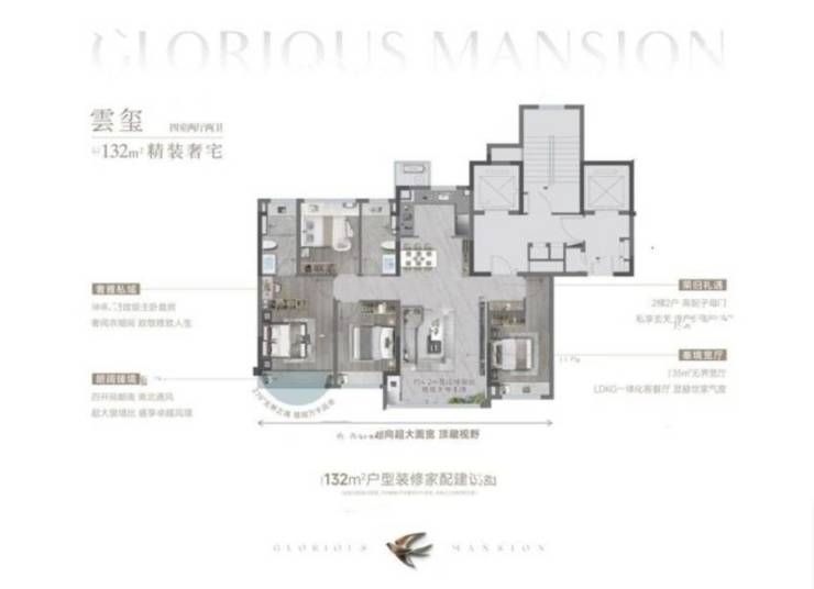 龙湖亚伦璟云上府项目的119㎡经典四叶草户型备受关注。该户型整体空间得房率近乎90%,主卧套房约20㎡,设置有双衣帽柜,客厅则是一个开间5米、面积高达约40㎡的大方厅。这一设计不仅使得空间更为宽敞舒适,同时也充分考虑了居住者的实际需求,为他们提供了更为舒适便捷的生活体验。