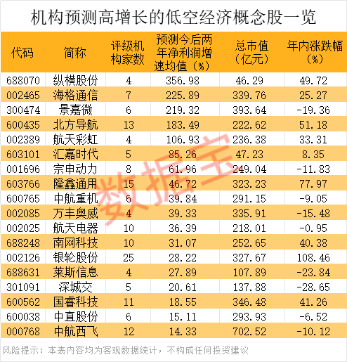 低空经济持续获政策支持 业绩有望高增长概念股出炉