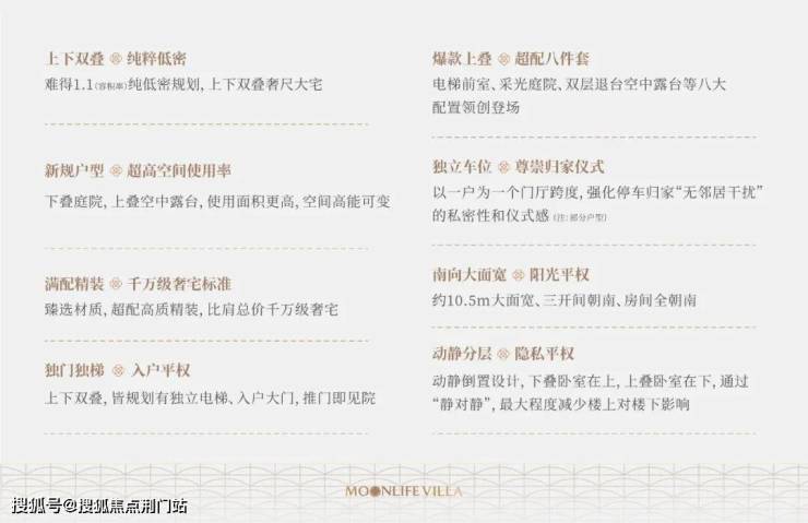 新规户型八大升级,以独门独梯、独立车位、阳光平权、动静分层、超高空间使用率的上下双叠奢尺大宅,实现家庭全生命周期的居住理想。