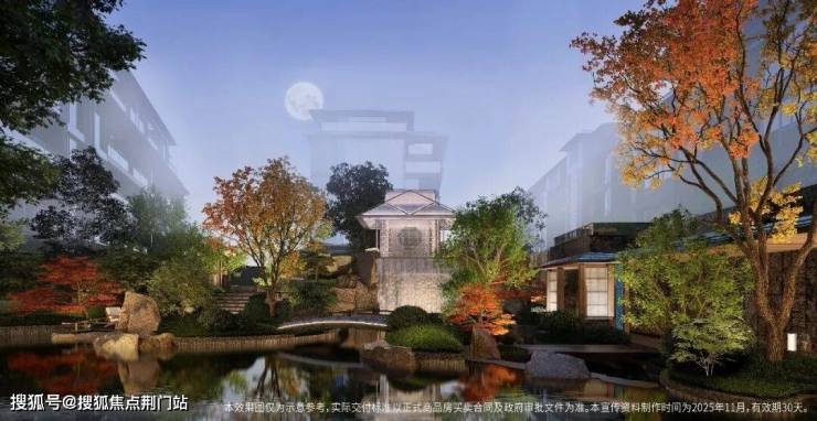 从社区入口开始,仪式感便贯穿始终。丹青经典系青云门阙,以宏阔尺度与奢石立面,为你呈献第一重华贵礼序。步入园区,占地约千方的江南园林徐徐展开,一桥、一亭、一廊、一台、一瀑精心布局,移步易景,宛若一幅徐徐展开的立体山水画卷。