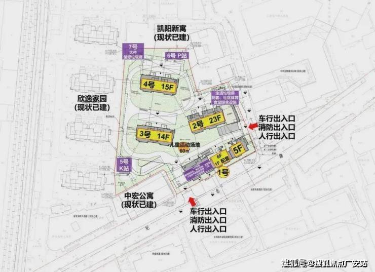 2号楼23层高层,3号楼14层,4号楼15层,2号楼的东北角是生活垃圾房,社区体育配套,食堂综合设施;