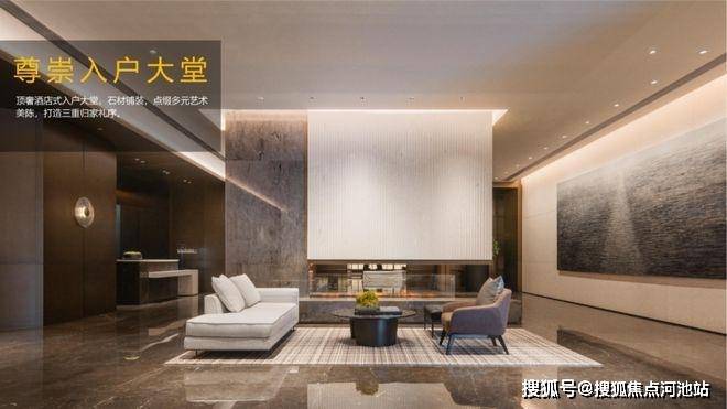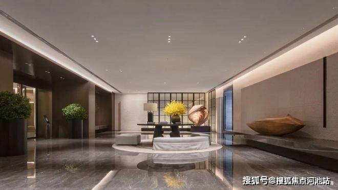 顶奢酒店式入户大堂,石材铺装,打造尊崇的三重归家礼序,开敞阔绰奢豪,搭配多元艺术美陈,媲美深圳湾壹号。