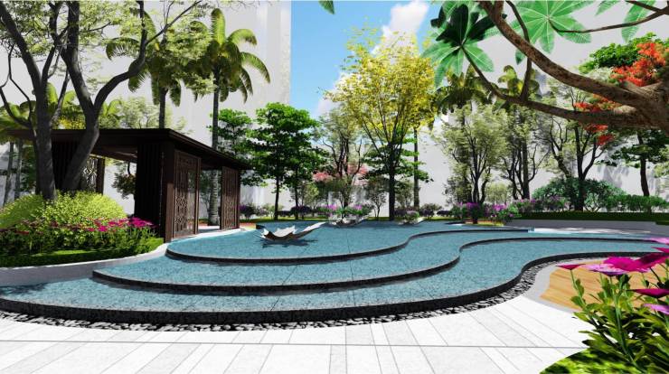 项目C区规划约700㎡休闲泳池,分为儿童戏水池(深度约0.6m)、成人泳池(深度约0.9-1.4m),配有照明灯具、户外淋浴及绿墙围挡,场地宽敞明亮且私密,业主在这里能享受到阳光、空气、泳池及温馨舒适的氛围,非常适合业主游泳锻炼。
