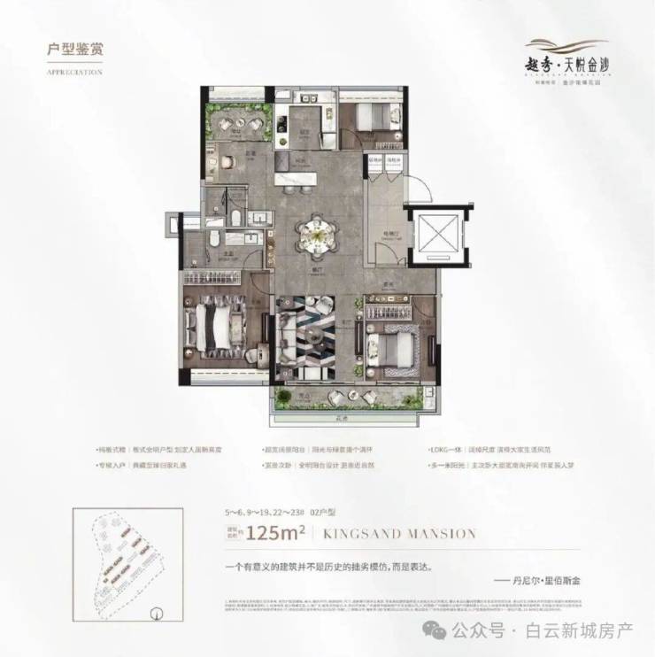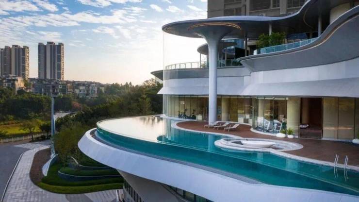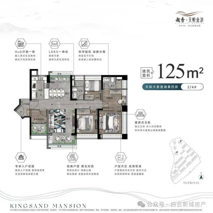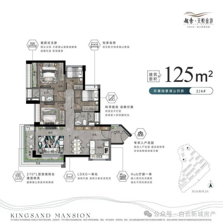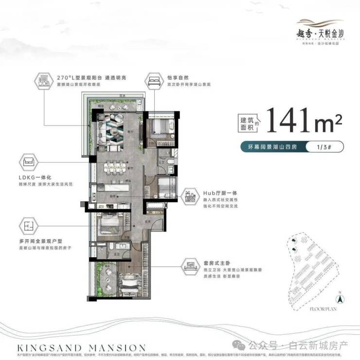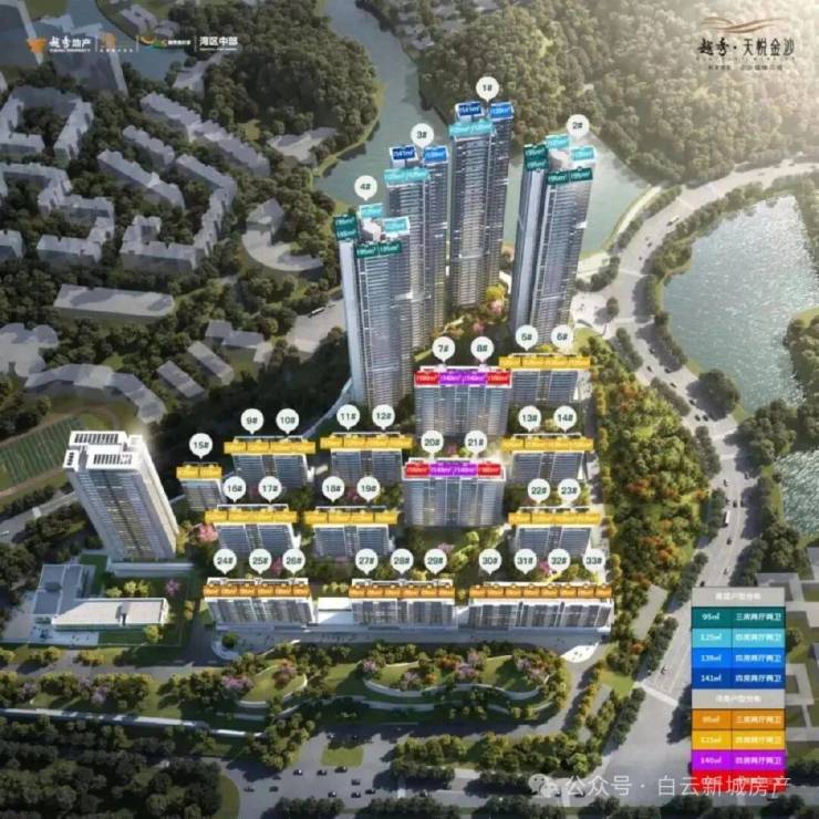 超高层景观:金沙洲第一超高层住宅,270°超奢阔阳台,尽享湖景、山景和园林美景。