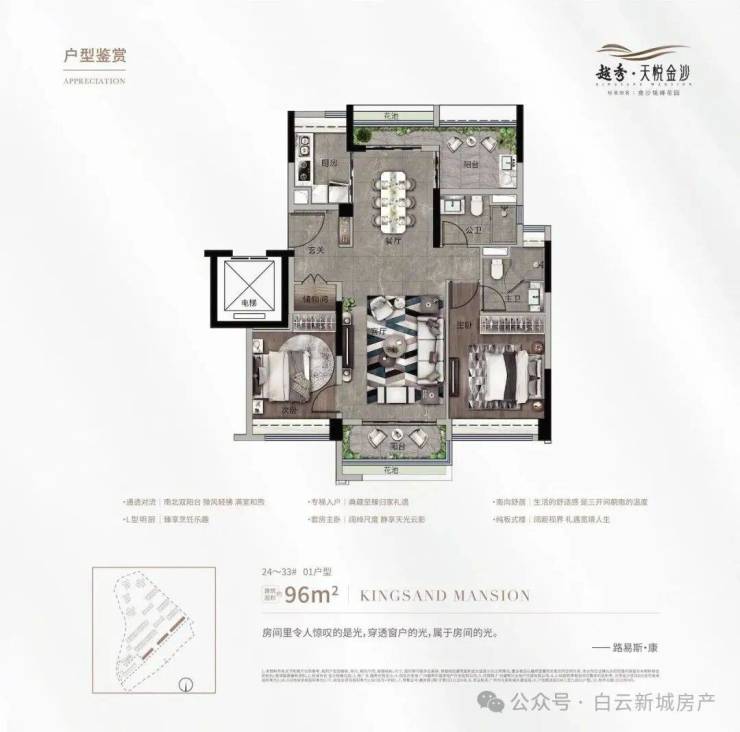 纯板式小高层:金沙洲在售唯一的低密小高层,一梯两户,楼间距达到1:1,享受豪宅般的舒适生活。