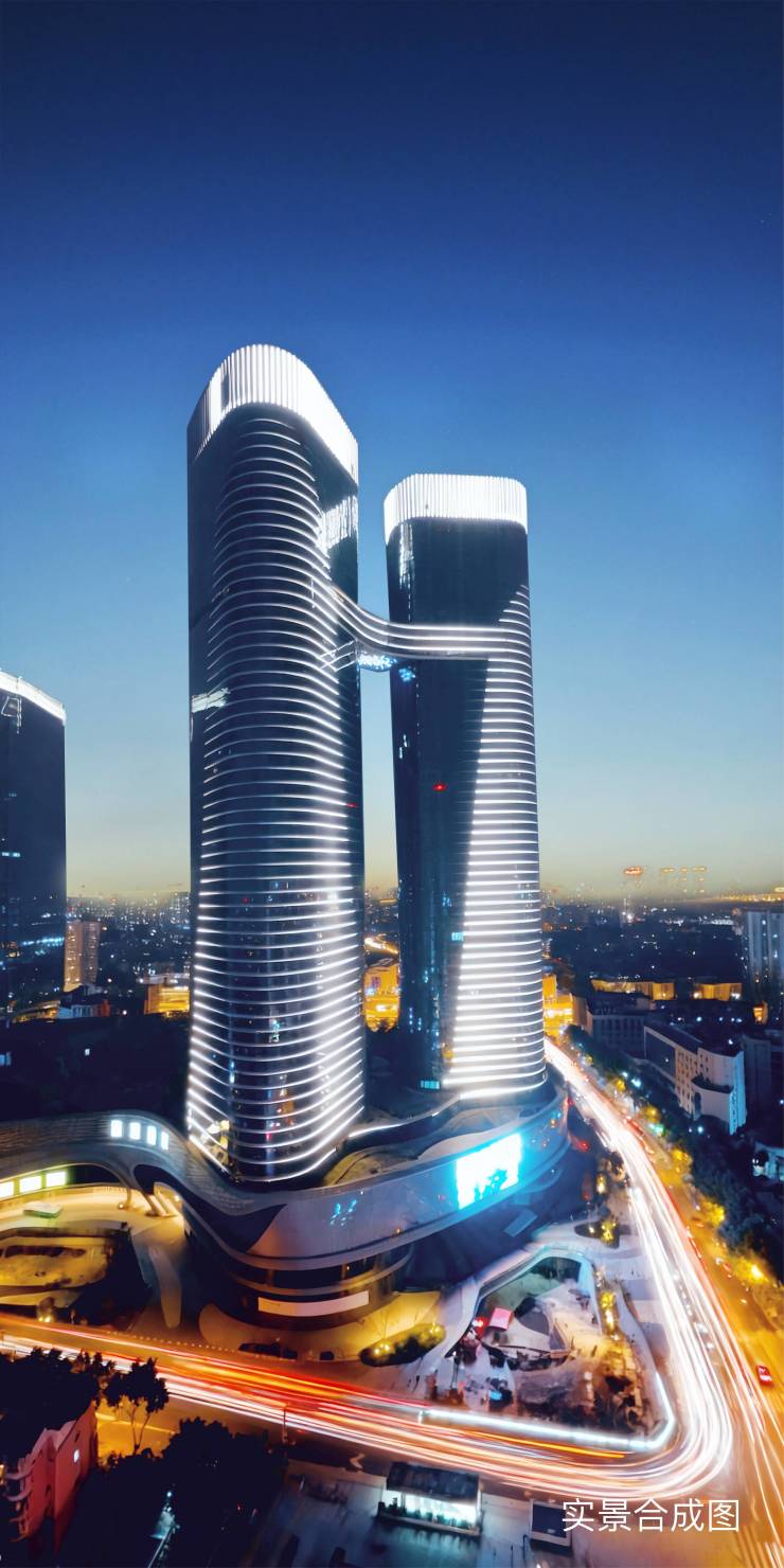 项目总面积约60万方,由两栋约243.9米超高层双子塔与两栋约199.9米塔楼组成,是集皇冠假日酒店、商业mall、企业总部大厦和天际云邸于一体的超级综合体。