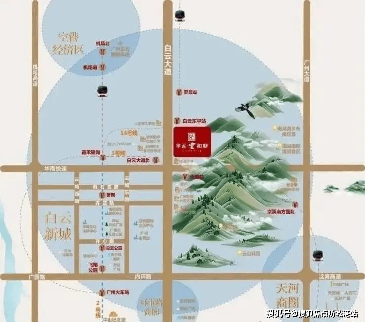 华远·雲和墅所处的白云大道北板块,正处于白云新城扩容提质的关键阶段。近年来,白云区政府大力推动“白云新城—设计之都—健康产业城”三大引擎联动发展,片区定位为广州北部的高端商务与宜居核心区。