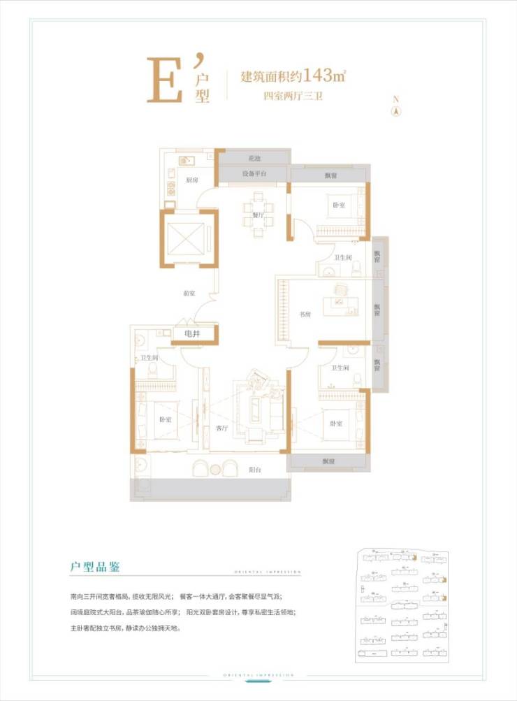 【品质户型】:105-143㎡ 阔境高层 158-258㎡墅质洋房