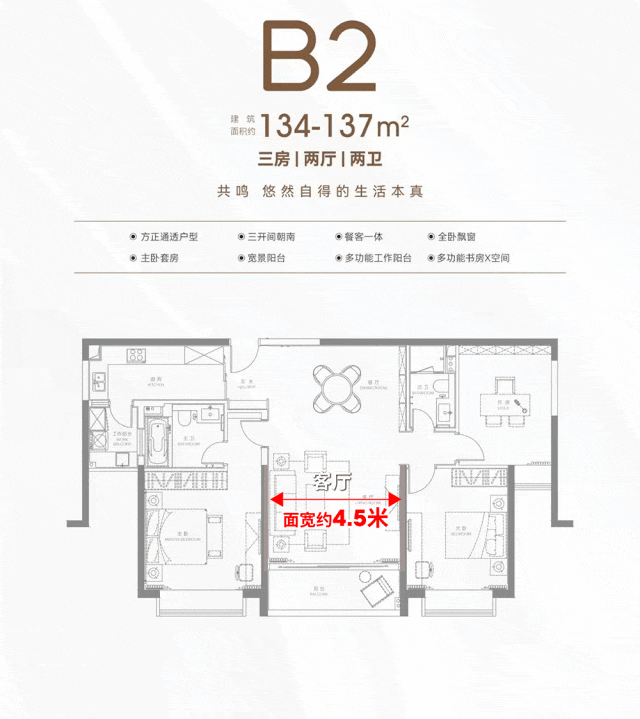 建面约134-137㎡B2户型: