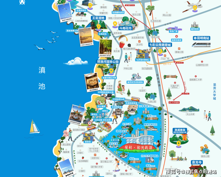七大生态景观公园:国立艺专旧址公园、文创公园、古滇精品湿地公园、团山湿地公园、捞鱼河公园、渔浦寒泉森林生态湿地公园、郑和公园