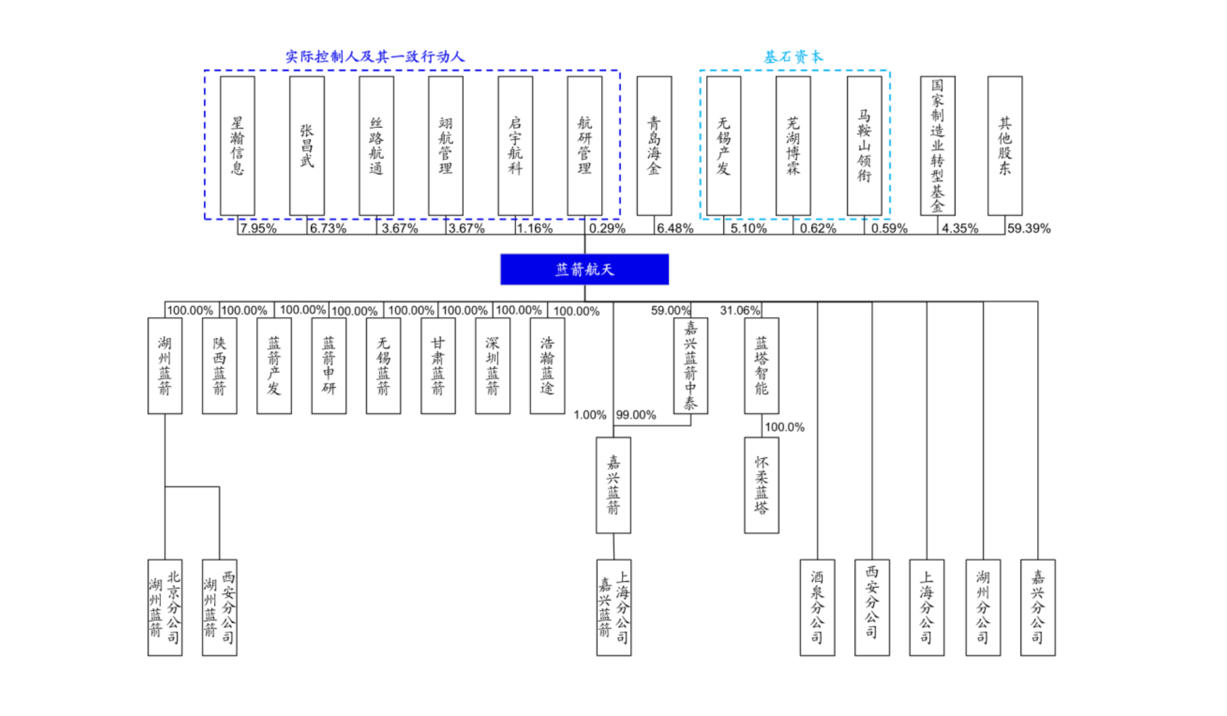 根据,蓝箭航天设置的表决权差异安排,张昌武及星瀚信息所持公司股份为特别表决权股份。因此,张昌武共计控制该公司75.2019%表决权。