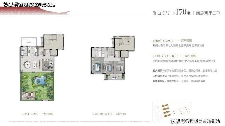 宽幕平层(建面177㎡):约19.4米南向面宽、五开间朝南,以“大平层尺度”重构墅居体验。全系精装交付,配备中央空调、地暖、智能家居系统,得房率高达85%。