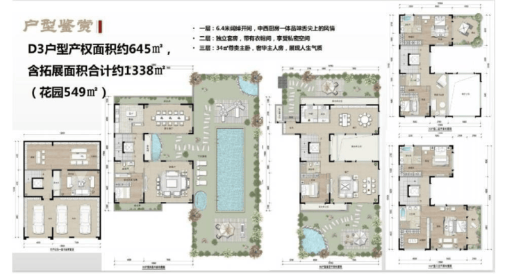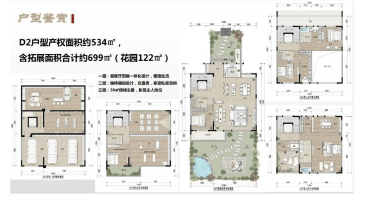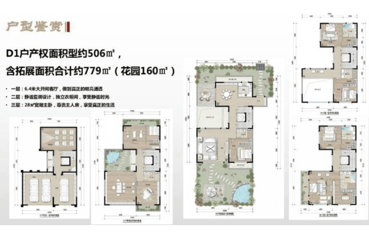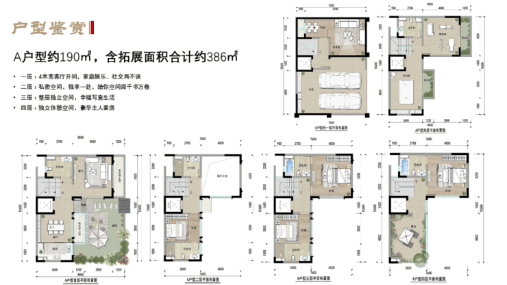 产品:A户型:190㎡产权面积约280㎡;B户型:213㎡产权面积约310㎡;C户型:303㎡产权面积约490㎡