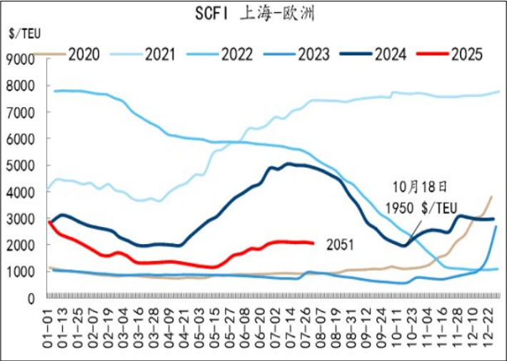 国泰君安期货研究团队结合中东地缘政治局势、欧洲经济复苏态势、班轮公司运力控制能力及中国对欧洲出口结构等多重因素,综合研判2025年年底欧线运价具备支撑。在此基础上,建议企业利用集运指数(欧线)期货进行买入套期保值,以期货市场的盈利对冲未来现货拿舱成本的上涨。
