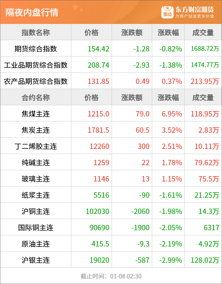 东方财富期货早餐 1月8日 周四