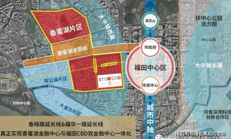 中区定位为香蜜湖新金融中心,规划建设国际一流金融街区;