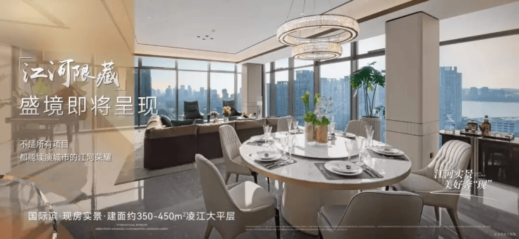 钱塘江景:项目距江岸仅约500米,350㎡以上户型均享无遮挡江景,日出日落、夜景璀璨,皆为日常。