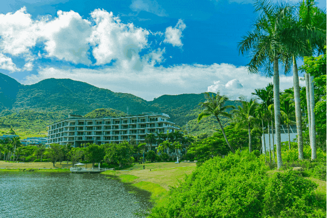 园区背靠白石岭群山雨林,私享朗阔蓝月湖,山环水抱,藏风聚气,玉带环腰,以水作佩,以风为裳,可谓是三亚的人居福地。
