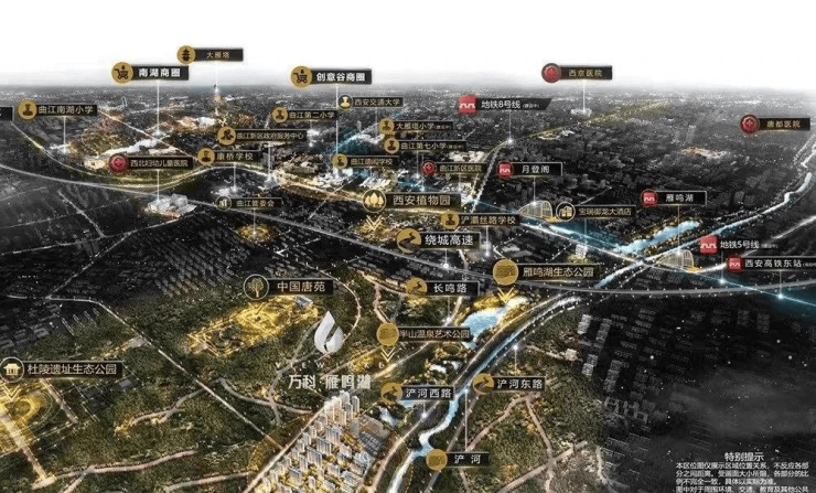 6、高端人居板块布局。城市级配套落位兑现及生态环境加持,推升全新的城市高端宜居板块。以唐苑为中心,融创曲江印、玫瑰园、流光云谷、云松间,即将入市的星河湾等,西安近半的豪宅环绕排布。未来在这个兼具城市配套、珍稀环境、历史底蕴的大面积高端改善产品片区,万科雁鸣湖约110-135㎡产品,成为中等面积品质改善需求客户首选。