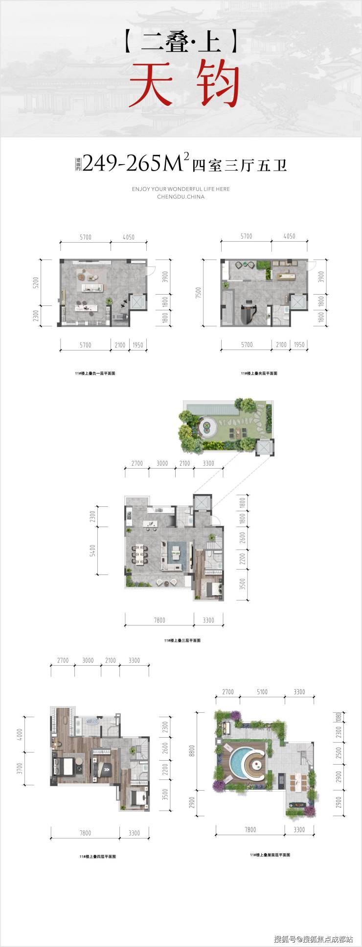 【两叠】上叠 四室三厅五卫 | 约249 – 265㎡