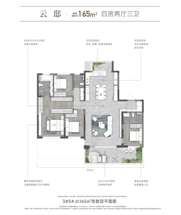 建面:约165㎡ 峯境岛院,主城罕见的低密生活