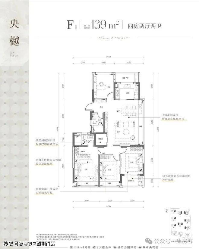 建面约139㎡的四房两厅两卫户型,则以它的南向三卧室:双飘窗+封闭阳台设计脱颖而出。整体南北通透设计,加上主卧衣帽间的贴心设置,为家庭生活提供了更多的空间选择和功能性需求。