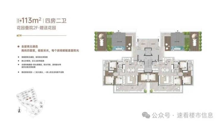 其二,约113㎡低密叠院——主城十年难觅的江畔“有天有地”