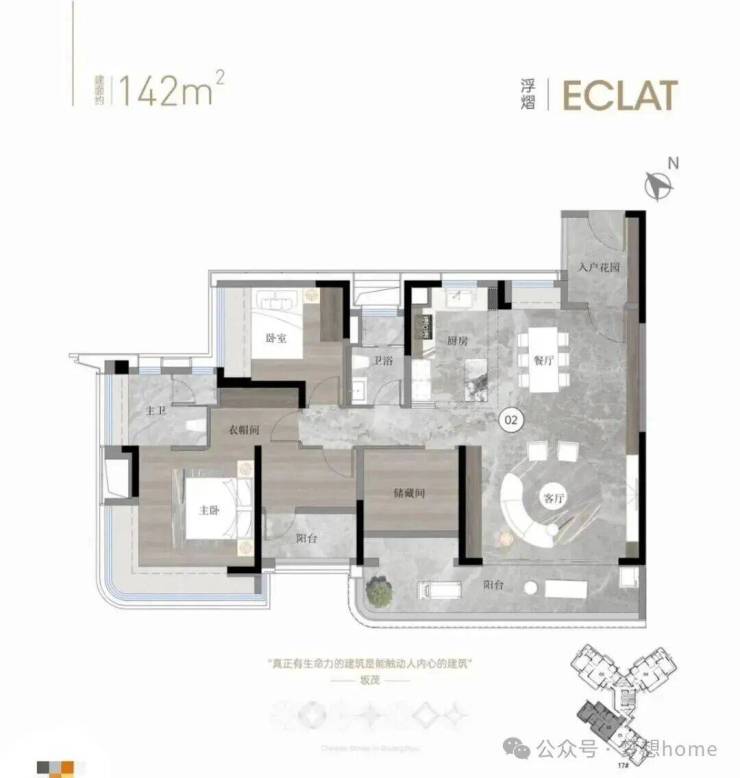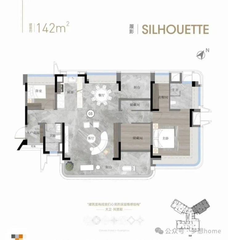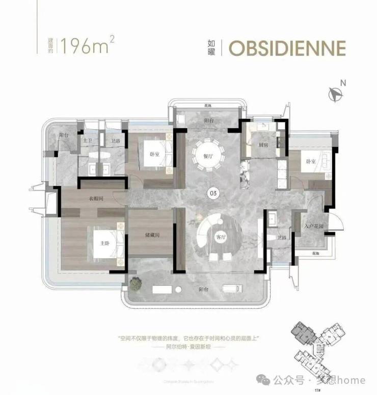 休憩区、步入式衣柜、多功能区、L型大飘窗等场景都有规划,居住尺度完全是按照豪宅的做法,仪式感和实用性满分。