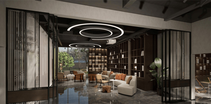 双泛会所:架空层设咖啡露营区+共享厨房/健身空间