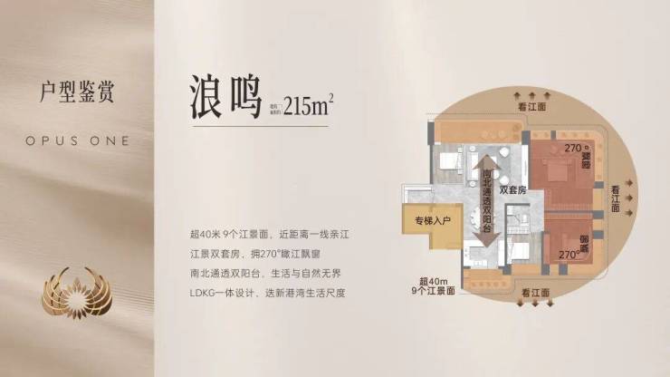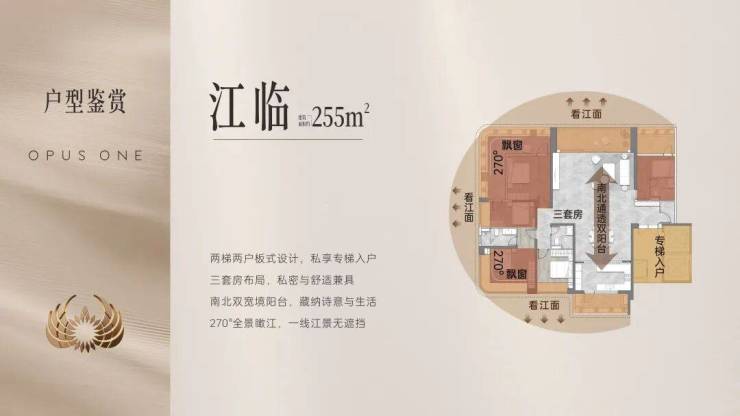 项目主推建面约128-295㎡纯粹望江大平层,以“低密+奢居”为核心设计理念: