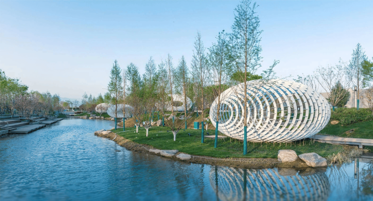 未来之瞳湿地公园、大仁遗址公园、永安渠Z字型水系景观。远眺秦岭自然山景,城市绿肺群集,毗邻百亩公园(拟规划)。