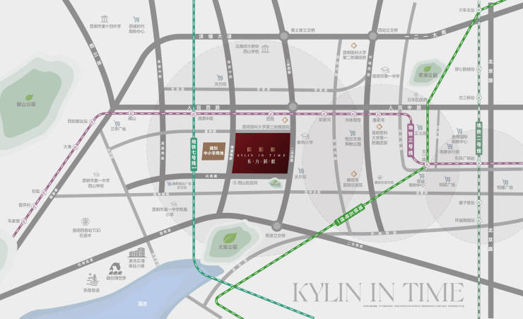 全昆明范围内除市中心板块外,距离市中心最近、配套最丰富、生活最便捷、道路最完善的黄金板块