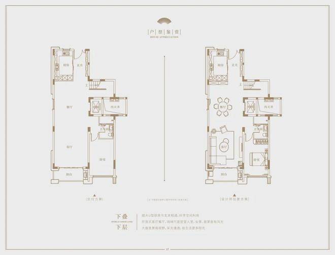 户型设计独具匠心。目前主推叠墅,建面约 206 – 243㎡ ,与市场常见产品不同,只有上叠和下叠,配私家电梯,两层地下拓展空间,保证每一户的私密性。上叠建面约 240㎡ ,独立入户,首层独立会客厅和长辈房,二层三间卧室,顶层还有私家露台花园,可赏白云山景,举办聚会,畅享惬意生活。下叠建面约 206㎡ ,空间感不错,同样配置两层地下拓展空间。平墅产品买一层送一层,如 215 方平墅赠送 230 方阳光房,使用面积近 500 方,得房率极高,空间利用合理,满足不同家庭对空间的需求,无论是享受生活还是家庭居住,都能提供舒适的体验。