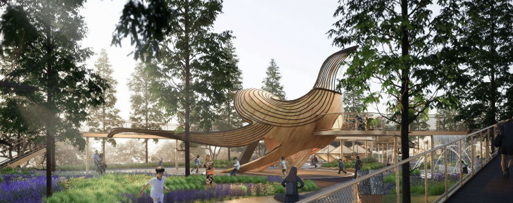 项目西侧规划秦文化主题中轴公园,规划设计文化走廊、国潮运动场、玄鸟奇境、绿野草坪、秦风广场等组团节点,打造移步异景归家路。