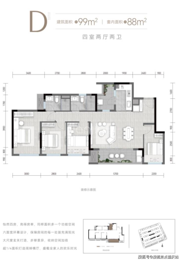 建面约99平套四